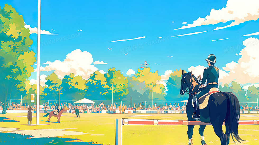 本作品内容为运动会男运动员马术比赛插画, 格式为 jpg, 大小3 MB, 图片尺寸为2912 x 1632, 源文件无水印, 欢迎使用熊猫办公。 如认为平台内容涉嫌侵权,可通过邮件:tousu@tukuppt.com提出书面通知,我们将及时处理。
