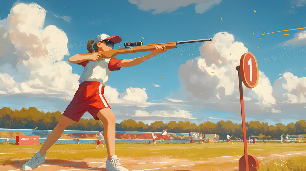 本作品内容为运动会射击比赛的女运动员插画, 格式为 jpg, 大小3 MB, 图片尺寸为2912 x 1632, 源文件无水印, 欢迎使用熊猫办公。 如认为平台内容涉嫌侵权,可通过邮件:tousu@tukuppt.com提出书面通知,我们将及时处理。