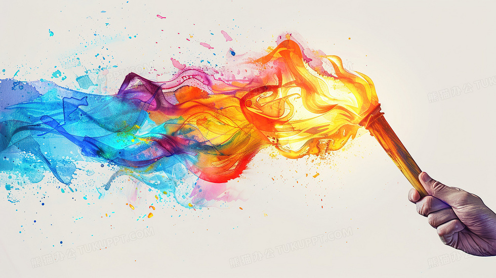 本作品内容为彩色水墨奥运火炬背景, 格式为 jpg, 大小3 MB, 图片尺寸为2912 x 1632, 作品中背景图片无需修改, 源文件无水印,可以直接使用, 欢迎使用熊猫办公。 如认为平台内容涉嫌侵权,可通过邮件:tousu@tukuppt.com提出书面通知,我们将及时处理。