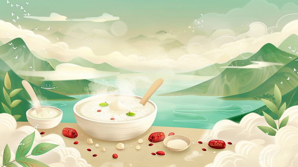 本作品内容为唯美大自然山水美食甜粥插画, 格式为 jpg, 大小2 MB, 图片尺寸为2912 x 1632, 源文件无水印, 欢迎使用熊猫办公。 如认为平台内容涉嫌侵权,可通过邮件:tousu@tukuppt.com提出书面通知,我们将及时处理。
