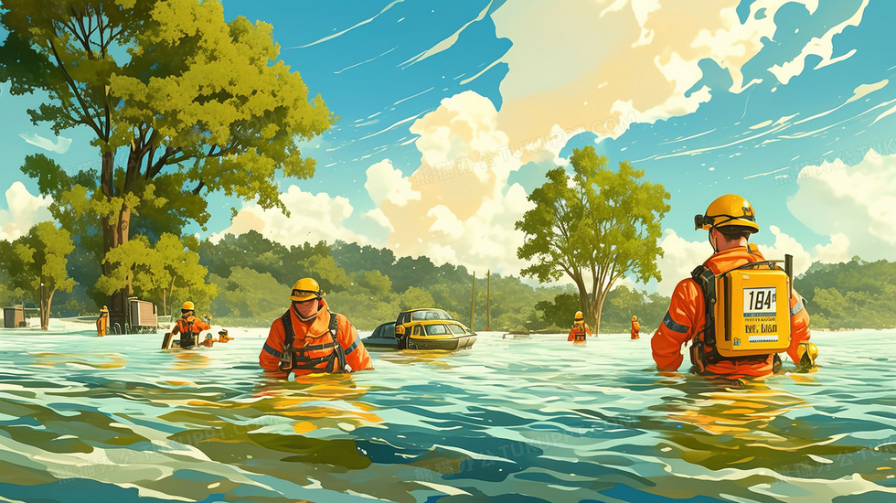 本作品内容为洪水灾害防护救灾的救援人员插画, 格式为 jpg, 大小3 MB, 图片尺寸为2912 x 1632, 源文件无水印, 欢迎使用熊猫办公。 如认为平台内容涉嫌侵权,可通过邮件:tousu@tukuppt.com提出书面通知,我们将及时处理。