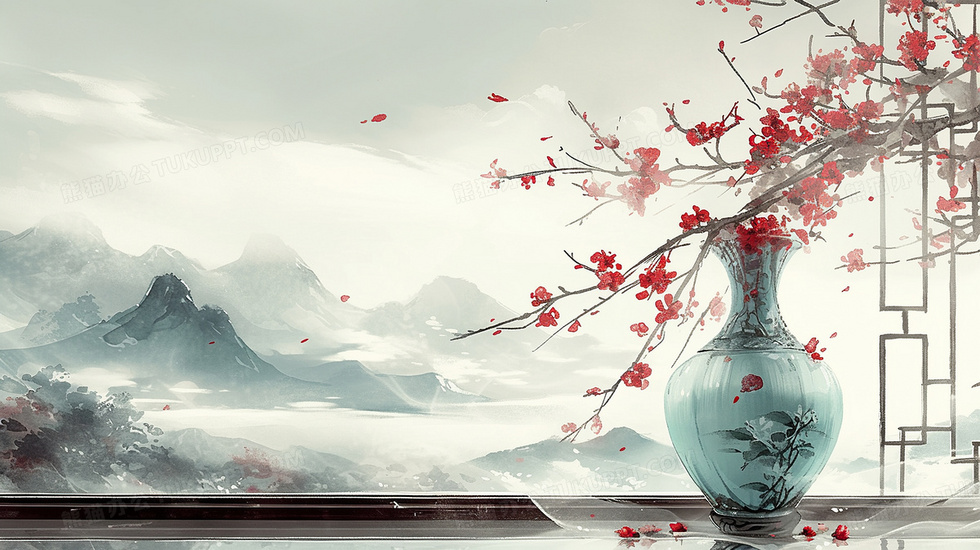本作品内容为中国风水墨山水瓷器花瓶插画, 格式为 jpg, 大小3 MB, 图片尺寸为2912 x 1632, 源文件无水印, 欢迎使用熊猫办公。 如认为平台内容涉嫌侵权,可通过邮件:tousu@tukuppt.com提出书面通知,我们将及时处理。