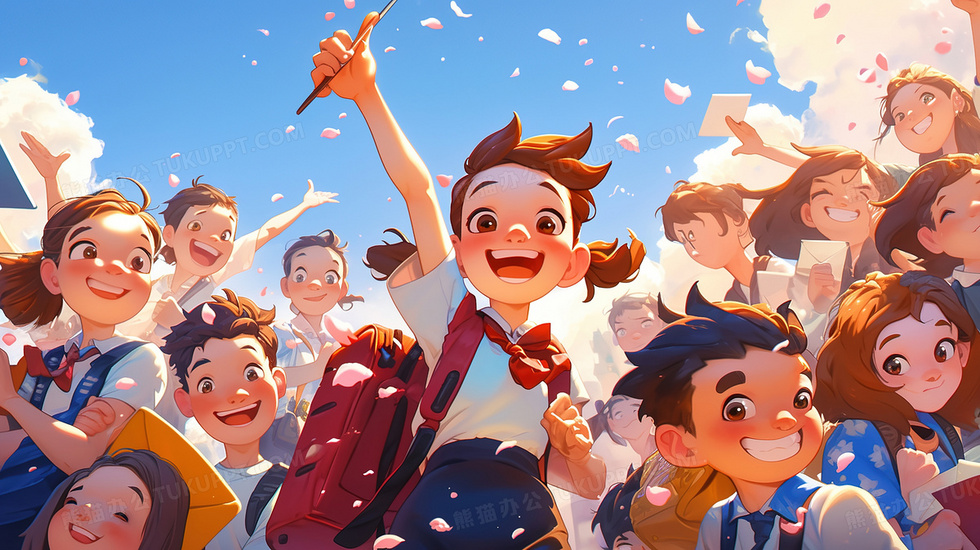 本作品内容为蓝天白云开心拍照的学生插画, 格式为 jpg, 大小3 MB, 图片尺寸为2912 x 1632, 源文件无水印, 欢迎使用熊猫办公。 如认为平台内容涉嫌侵权,可通过邮件:tousu@tukuppt.com提出书面通知,我们将及时处理。