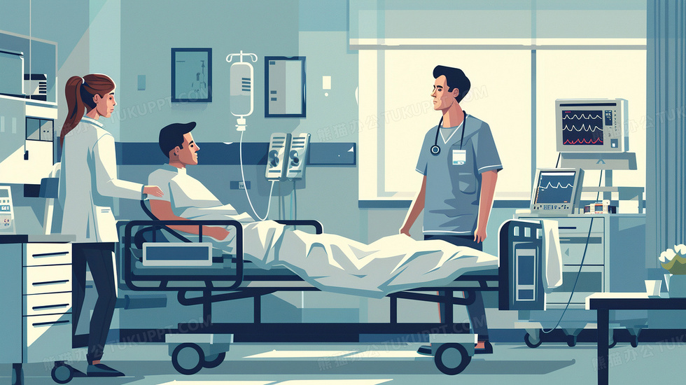 本作品内容为医院医生病房里查房场景插画, 格式为 jpg, 大小3 MB, 图片尺寸为2912 x 1632, 源文件无水印, 欢迎使用熊猫办公。 如认为平台内容涉嫌侵权,可通过邮件:tousu@tukuppt.com提出书面通知,我们将及时处理。