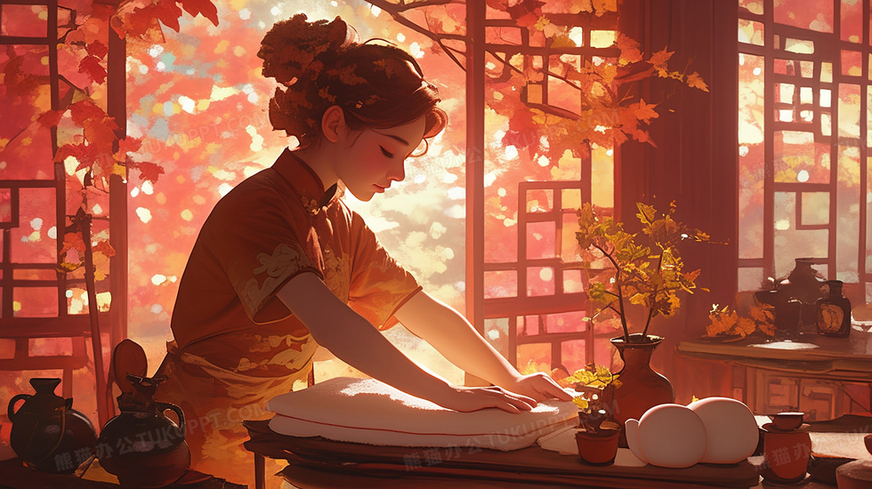 本作品内容为秋季养生调理身体的养生馆女子插画, 格式为 jpg, 大小3 MB, 图片尺寸为2912 x 1632, 源文件无水印, 欢迎使用熊猫办公。 如认为平台内容涉嫌侵权,可通过邮件:tousu@tukuppt.com提出书面通知,我们将及时处理。