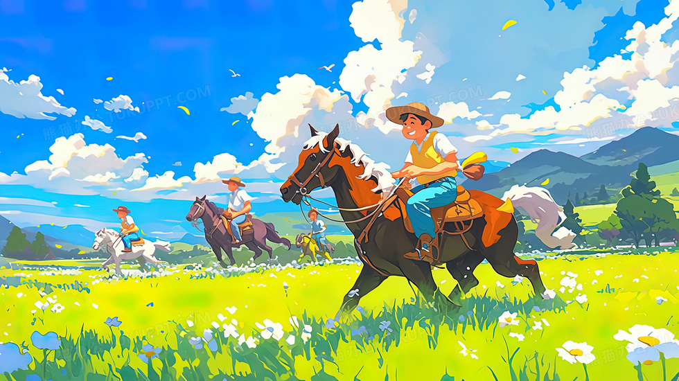 本作品内容为蓝天白云草原骑马的少年插画, 格式为 jpg, 大小3 MB, 图片尺寸为2912 x 1632, 源文件无水印, 欢迎使用熊猫办公。 如认为平台内容涉嫌侵权,可通过邮件:tousu@tukuppt.com提出书面通知,我们将及时处理。
