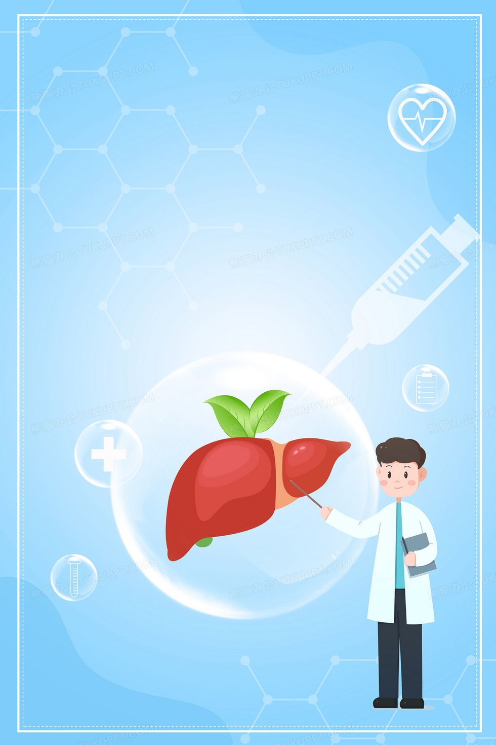本作品内容为世界肝炎日关注肝健康医疗卡通背景, 格式为 psd, 大小4 MB, 图片尺寸为3543 x 5315, 作品中背景图片无需修改, 源文件无水印,可以直接使用, 欢迎使用熊猫办公。 如认为平台内容涉嫌侵权,可通过邮件:tousu@tukuppt.com提出书面通知,我们将及时处理。
