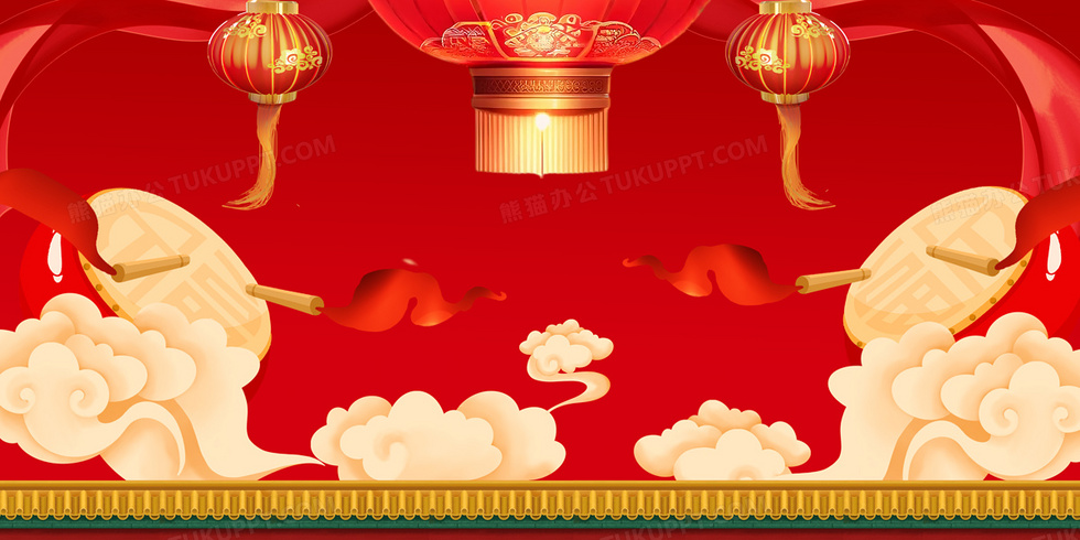 本作品内容为中国风喜庆击鼓背景, 格式为 psd, 大小36 MB, 图片尺寸为4724 x 2362, 作品中背景图片无需修改, 源文件无水印,可以直接使用, 欢迎使用熊猫办公。 如认为平台内容涉嫌侵权,可通过邮件:tousu@tukuppt.com提出书面通知,我们将及时处理。
