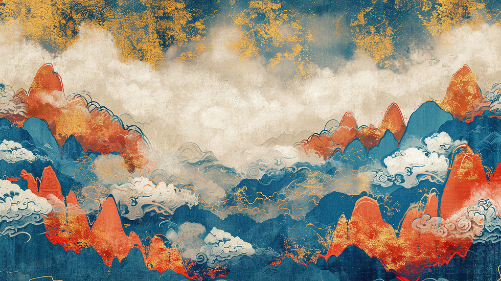 本作品内容为彩色唯美国潮鎏金山水画插画, 格式为 jpg, 大小5 MB, 图片尺寸为2912 x 1632, 源文件无水印, 欢迎使用熊猫办公。 如认为平台内容涉嫌侵权,可通过邮件:tousu@tukuppt.com提出书面通知,我们将及时处理。