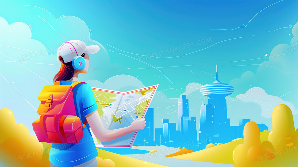 本作品内容为拿着旅游攻略旅游的女孩插画, 格式为 jpg, 大小2 MB, 图片尺寸为2912 x 1632, 源文件无水印, 欢迎使用熊猫办公。 如认为平台内容涉嫌侵权,可通过邮件:tousu@tukuppt.com提出书面通知,我们将及时处理。