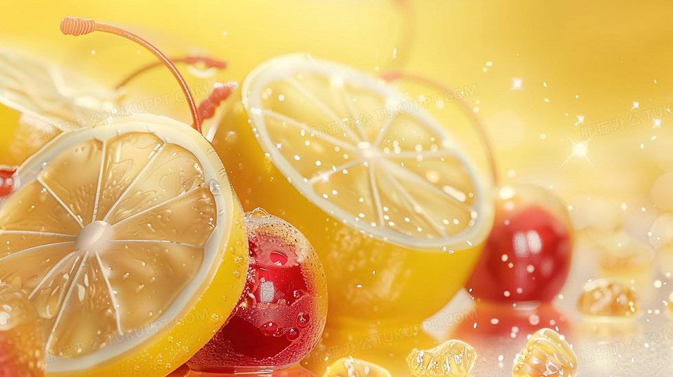 本作品内容为酸甜美味水果柠檬樱桃插画, 格式为 jpg, 大小2 MB, 图片尺寸为2912 x 1632, 源文件无水印, 欢迎使用熊猫办公。 如认为平台内容涉嫌侵权,可通过邮件:tousu@tukuppt.com提出书面通知,我们将及时处理。