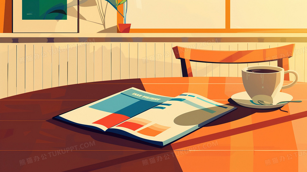 本作品内容为咖啡厅桌子上打开的书本和一杯咖啡插画, 格式为 jpg, 大小2 MB, 图片尺寸为2912 x 1632, 源文件无水印, 欢迎使用熊猫办公。 如认为平台内容涉嫌侵权,可通过邮件:tousu@tukuppt.com提出书面通知,我们将及时处理。