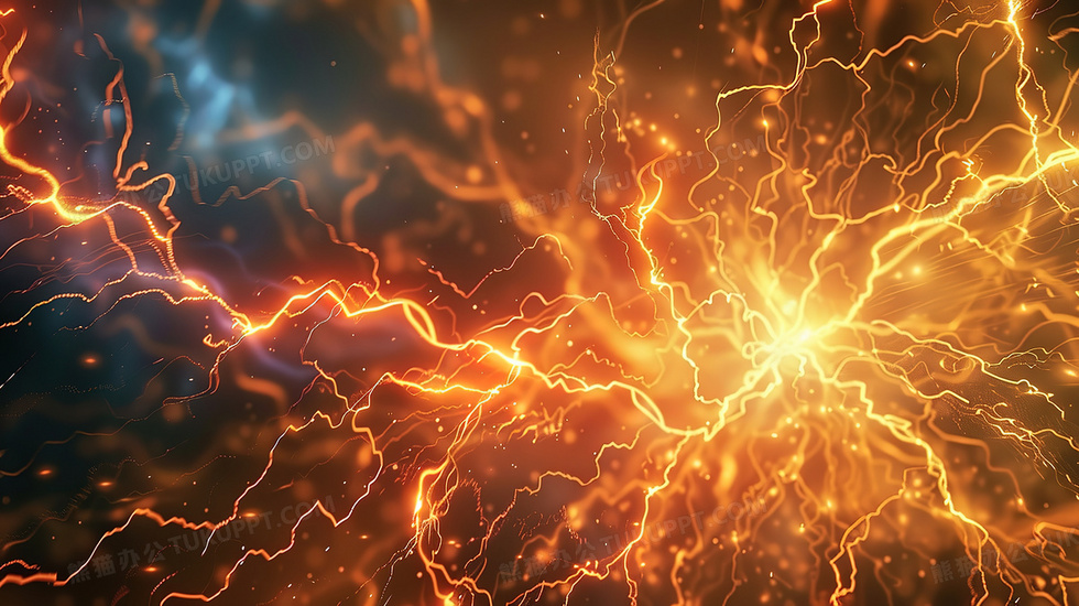 本作品内容为橙色闪耀闪电能量纹理背景, 格式为 jpg, 大小3 MB, 图片尺寸为2912 x 1632, 作品中背景图片无需修改, 源文件无水印,可以直接使用, 欢迎使用熊猫办公。 如认为平台内容涉嫌侵权,可通过邮件:tousu@tukuppt.com提出书面通知,我们将及时处理。