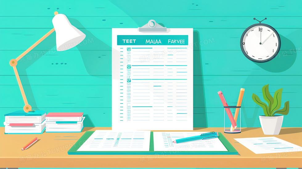 本作品内容为桌面学习考试的试卷插画, 格式为 jpg, 大小2 MB, 图片尺寸为2912 x 1632, 源文件无水印, 欢迎使用熊猫办公。 如认为平台内容涉嫌侵权,可通过邮件:tousu@tukuppt.com提出书面通知,我们将及时处理。
