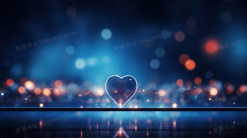 本作品内容为蓝色科技爱心背景, 格式为 jpg, 大小2 MB, 图片尺寸为2912 x 1632, 作品中背景图片无需修改, 源文件无水印,可以直接使用, 欢迎使用熊猫办公。 如认为平台内容涉嫌侵权,可通过邮件:tousu@tukuppt.com提出书面通知,我们将及时处理。