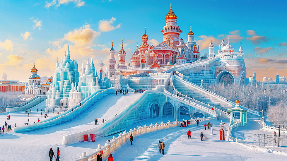 首页 > 插画 > 科技艺术 > 其他 > 冬天壮观的冰雕游乐园