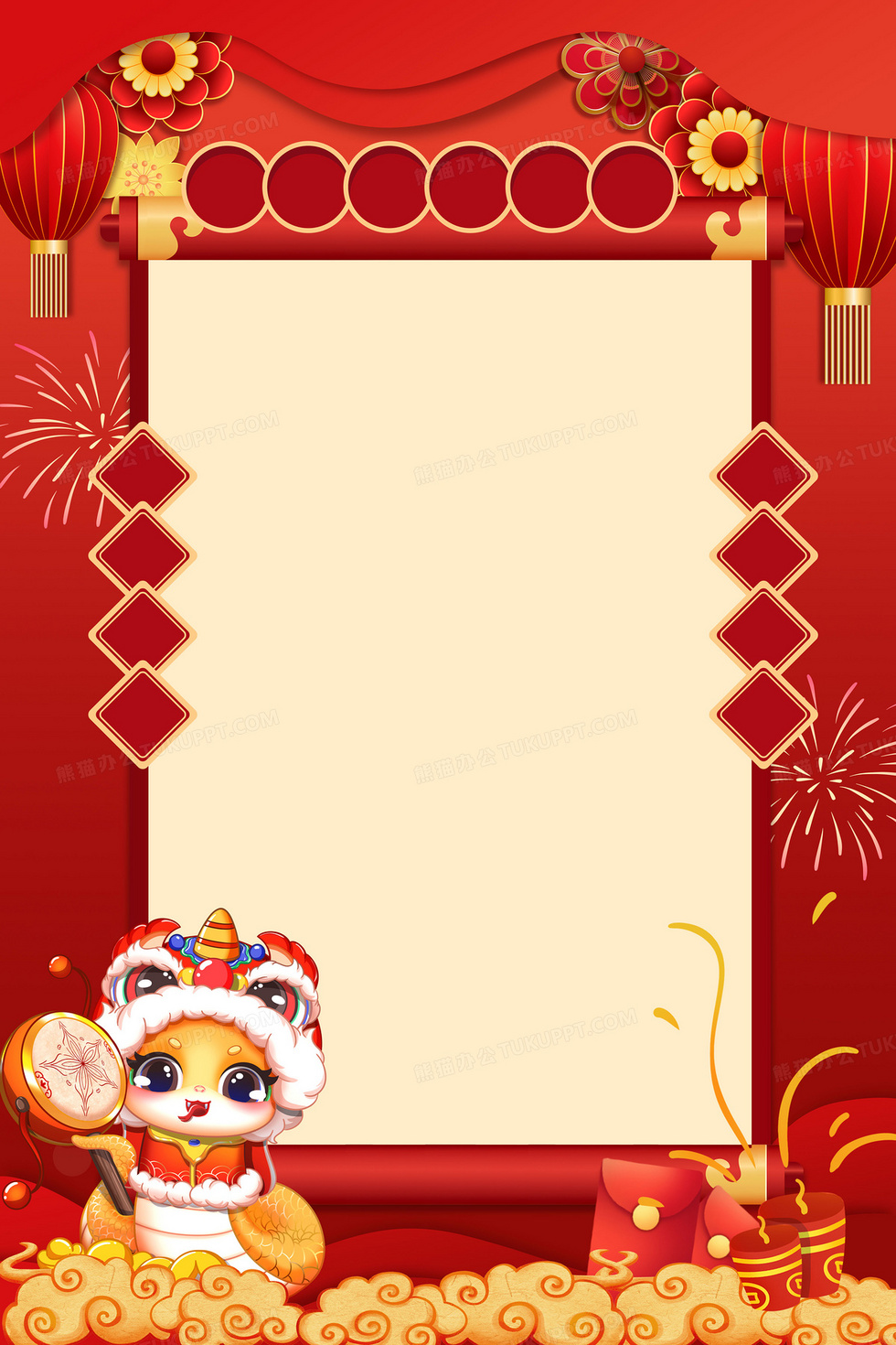 本作品内容为新春蛇年春节放假通知背景, 格式为 psd, 大小52 MB, 图片尺寸为3543 x 5315, 作品中背景图片无需修改, 源文件无水印,可以直接使用, 欢迎使用熊猫办公。 如认为平台内容涉嫌侵权,可通过邮件:tousu@tukuppt.com提出书面通知,我们将及时处理。