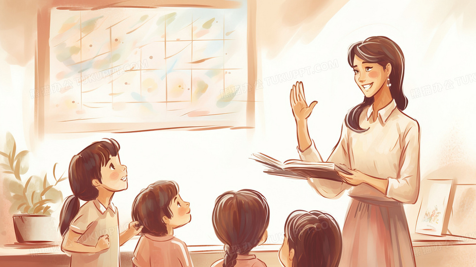 本作品内容为正在和学生们上课的老师插画, 格式为 jpg, 大小2 MB, 图片尺寸为2912 x 1632, 源文件无水印, 欢迎使用熊猫办公。 如认为平台内容涉嫌侵权,可通过邮件:tousu@tukuppt.com提出书面通知,我们将及时处理。