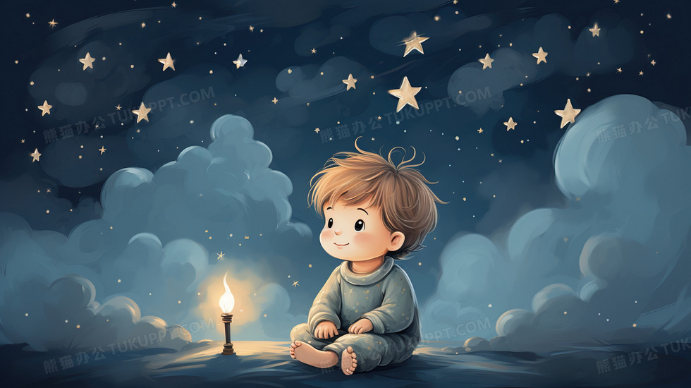 本作品内容为蓝色星空卡通小孩幼儿婴儿插画, 格式为 jpg, 大小2 MB, 图片尺寸为2912 x 1632, 源文件无水印, 欢迎使用熊猫办公。 如认为平台内容涉嫌侵权,可通过邮件:tousu@tukuppt.com提出书面通知,我们将及时处理。