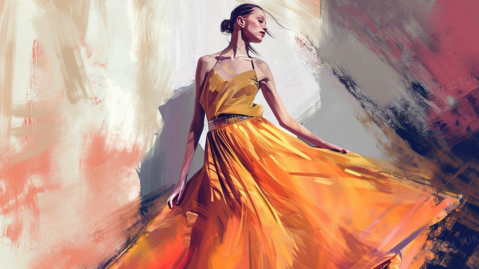 本作品内容为一个展示时尚裙子的女模特插画, 格式为 jpg, 大小3 MB, 图片尺寸为2912 x 1632, 源文件无水印, 欢迎使用熊猫办公。 如认为平台内容涉嫌侵权,可通过邮件:tousu@tukuppt.com提出书面通知,我们将及时处理。