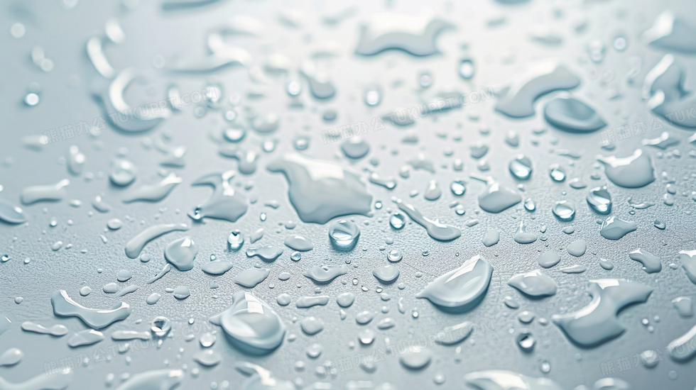 本作品内容为浅色液体水滴纹理背景, 格式为 jpg, 大小3 MB, 图片尺寸为2912 x 1632, 作品中背景图片无需修改, 源文件无水印,可以直接使用, 欢迎使用熊猫办公。 如认为平台内容涉嫌侵权,可通过邮件:tousu@tukuppt.com提出书面通知,我们将及时处理。