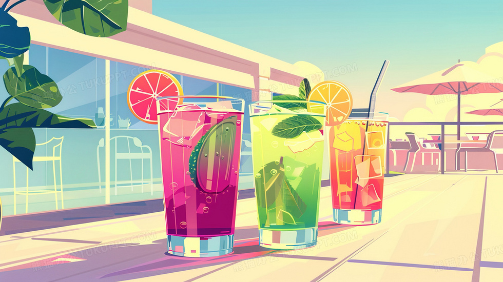 本作品内容为桌面夏季清凉饮品插画, 格式为 jpg, 大小3 MB, 图片尺寸为2912 x 1632, 源文件无水印, 欢迎使用熊猫办公。 如认为平台内容涉嫌侵权,可通过邮件:tousu@tukuppt.com提出书面通知,我们将及时处理。