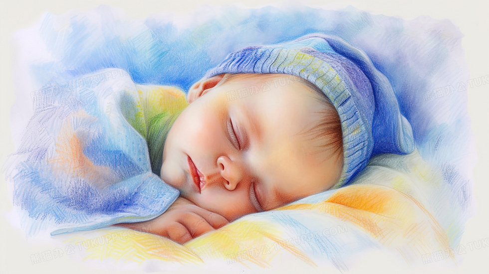 本作品内容为一个可爱熟睡的新生儿插画, 格式为 jpg, 大小3 MB, 图片尺寸为2912 x 1632, 源文件无水印, 欢迎使用熊猫办公。 如认为平台内容涉嫌侵权,可通过邮件:tousu@tukuppt.com提出书面通知,我们将及时处理。
