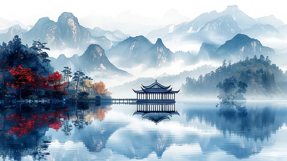 本作品内容为湖面江上凉亭风景自然插画, 格式为 jpg, 大小2 MB, 图片尺寸为2240 x 1256, 源文件无水印, 欢迎使用熊猫办公。 如认为平台内容涉嫌侵权,可通过邮件:tousu@tukuppt.com提出书面通知,我们将及时处理。