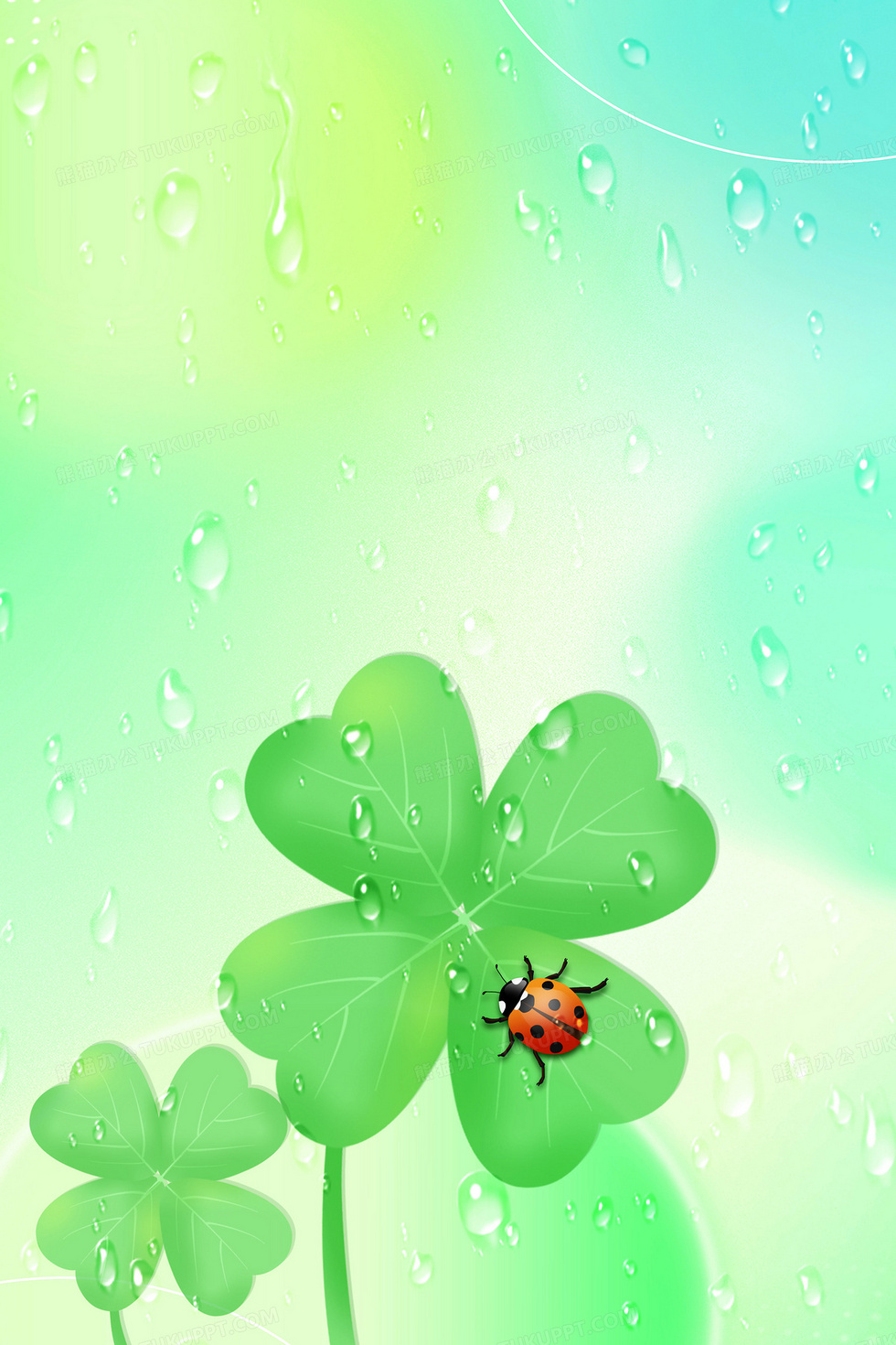 本作品内容为简约清新可爱四叶草瓢虫背景, 格式为 psd, 大小116 MB, 图片尺寸为3543 x 5315, 作品中背景图片无需修改, 源文件无水印,可以直接使用, 欢迎使用熊猫办公。 如认为平台内容涉嫌侵权,可通过邮件:tousu@tukuppt.com提出书面通知,我们将及时处理。
