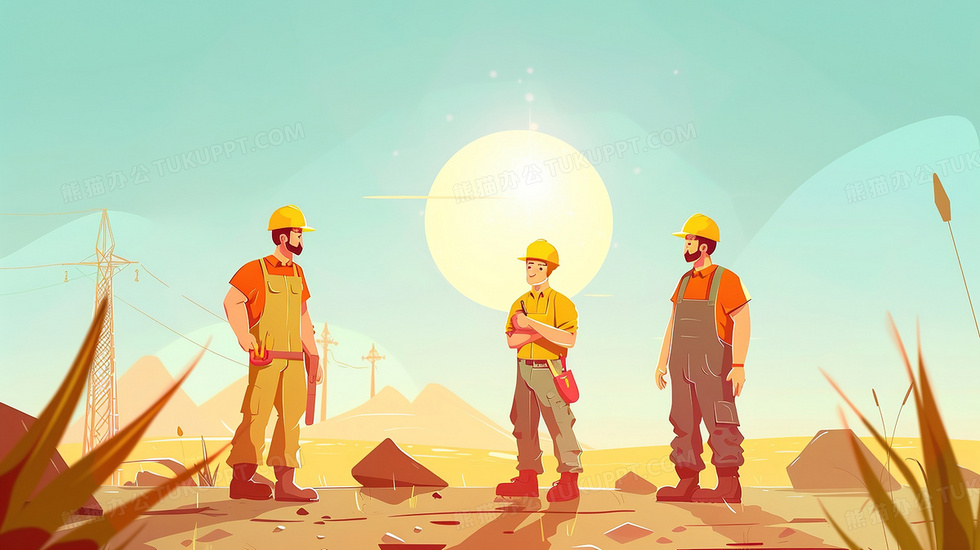 本作品内容为烈日下劳动的男性工人插画, 格式为 jpg, 大小2 MB, 图片尺寸为2912 x 1632, 源文件无水印, 欢迎使用熊猫办公。 如认为平台内容涉嫌侵权,可通过邮件:tousu@tukuppt.com提出书面通知,我们将及时处理。