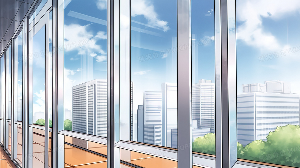 本作品内容为商务大厦落地玻璃窗走廊插画, 格式为 jpg, 大小2 MB, 图片尺寸为2912 x 1632, 源文件无水印, 欢迎使用熊猫办公。 如认为平台内容涉嫌侵权,可通过邮件:tousu@tukuppt.com提出书面通知,我们将及时处理。