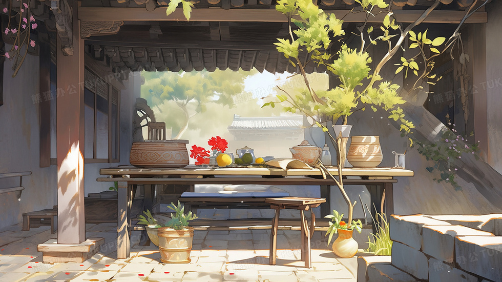 本作品内容为中国农村庭院里吃饭插画, 格式为 jpg, 大小3 MB, 图片尺寸为2912 x 1632, 源文件无水印, 欢迎使用熊猫办公。 如认为平台内容涉嫌侵权,可通过邮件:tousu@tukuppt.com提出书面通知,我们将及时处理。