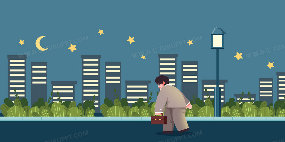 本作品内容为绿色扁平打工人深夜加班回家合成背景, 格式为 psd, 大小3 MB, 图片尺寸为4722 x 2361, 作品中背景图片无需修改, 源文件无水印,可以直接使用, 欢迎使用熊猫办公。 如认为平台内容涉嫌侵权,可通过邮件:tousu@tukuppt.com提出书面通知,我们将及时处理。
