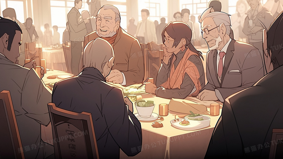 本作品内容为老年人聚会商谈插画, 格式为 jpg, 大小2 MB, 图片尺寸为2912 x 1632, 源文件无水印, 欢迎使用熊猫办公。 如认为平台内容涉嫌侵权,可通过邮件:tousu@tukuppt.com提出书面通知,我们将及时处理。