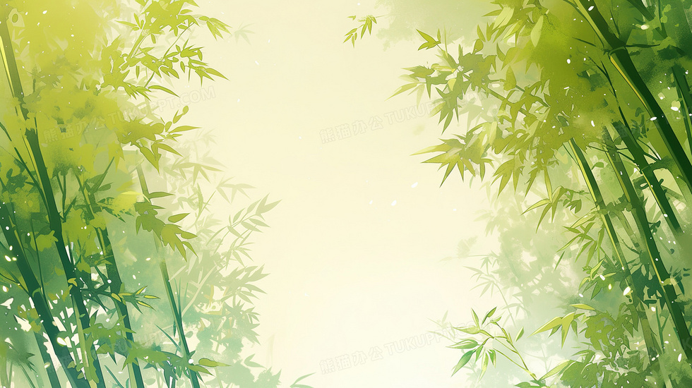 本作品内容为绿色竹林创意手绘清新背景图, 格式为 jpg, 大小3 MB, 图片尺寸为2912 x 1632, 作品中背景图片无需修改, 源文件无水印,可以直接使用, 欢迎使用熊猫办公。 如认为平台内容涉嫌侵权,可通过邮件:tousu@tukuppt.com提出书面通知,我们将及时处理。