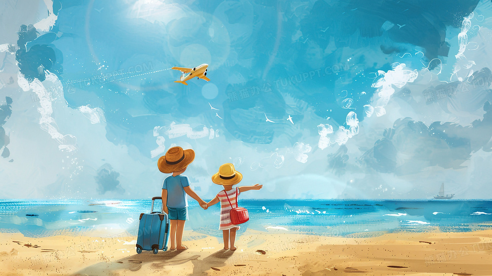 本作品内容为小孩子手拉手海边度假插画, 格式为 jpg, 大小3 MB, 图片尺寸为2912 x 1632, 源文件无水印, 欢迎使用熊猫办公。 如认为平台内容涉嫌侵权,可通过邮件:tousu@tukuppt.com提出书面通知,我们将及时处理。
