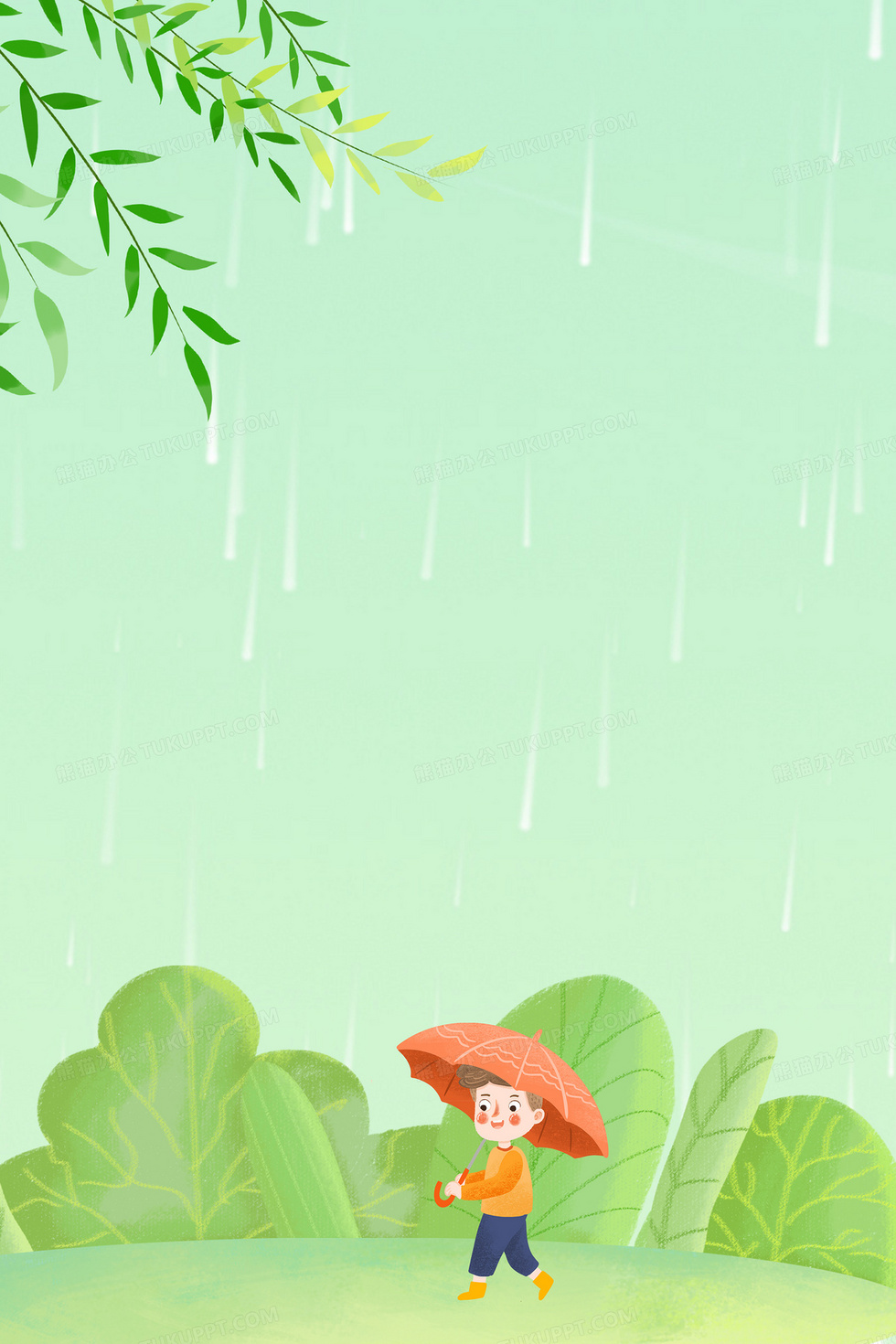 本作品内容为绿色清新下雨天打伞背景, 格式为 psd, 大小75 MB, 图片尺寸为3543 x 5314, 作品中背景图片无需修改, 源文件无水印,可以直接使用, 欢迎使用熊猫办公。 如认为平台内容涉嫌侵权,可通过邮件:tousu@tukuppt.com提出书面通知,我们将及时处理。