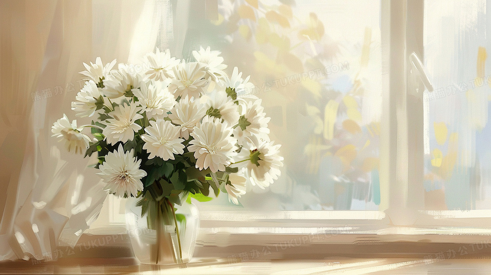 首页 > 插画 > 科技艺术 > 水彩手绘 > 窗台上一束素雅洁白的菊花