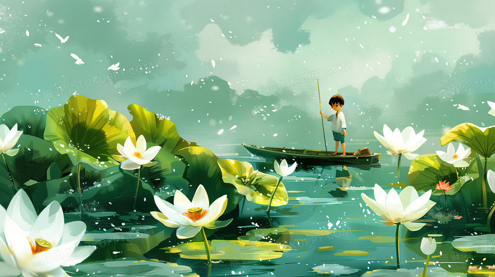 本作品内容为荷花池中划船的小男孩插画, 格式为 jpg, 大小3 MB, 图片尺寸为2912 x 1632, 源文件无水印, 欢迎使用熊猫办公。 如认为平台内容涉嫌侵权,可通过邮件:tousu@tukuppt.com提出书面通知,我们将及时处理。