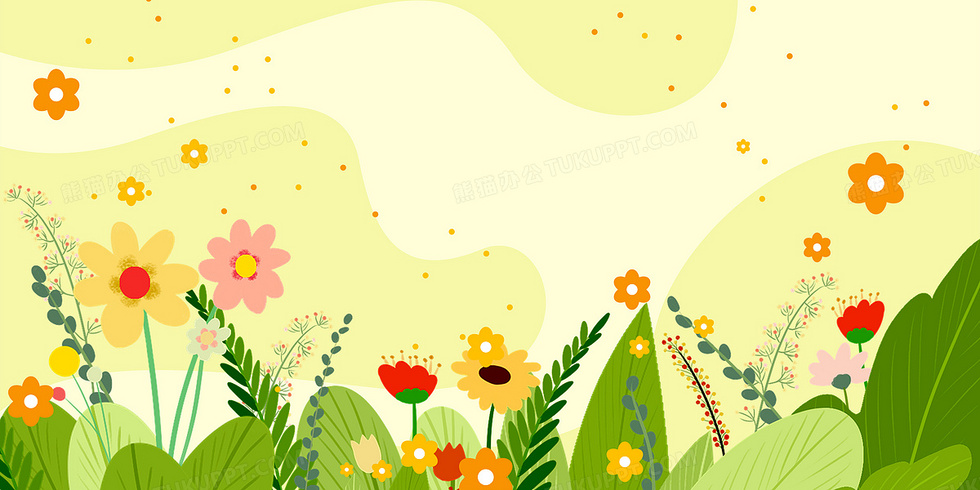 本作品内容为卡通小清新春天鲜花卡通背景, 格式为 psd, 大小33 MB, 图片尺寸为9449 x 4724, 作品中背景图片无需修改, 源文件无水印,可以直接使用, 欢迎使用熊猫办公。 如认为平台内容涉嫌侵权,可通过邮件:tousu@tukuppt.com提出书面通知,我们将及时处理。