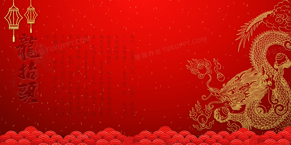 本作品内容为红色喜庆剪纸风二月二龙抬头背景, 格式为 psd, 大小190 MB, 图片尺寸为4724 x 2362, 作品中背景图片无需修改, 源文件无水印,可以直接使用, 欢迎使用熊猫办公。 如认为平台内容涉嫌侵权,可通过邮件:tousu@tukuppt.com提出书面通知,我们将及时处理。