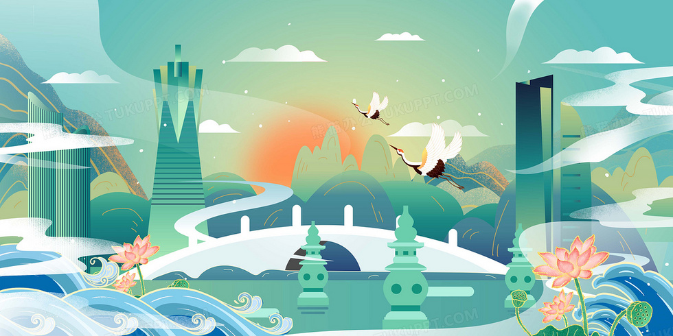 本作品内容为国潮创意杭州地标建筑手绘插画系列背景, 格式为 psd, 大小46 MB, 图片尺寸为4724 x 2362, 作品中背景图片无需修改, 源文件无水印,可以直接使用, 欢迎使用熊猫办公。 如认为平台内容涉嫌侵权,可通过邮件:tousu@tukuppt.com提出书面通知,我们将及时处理。