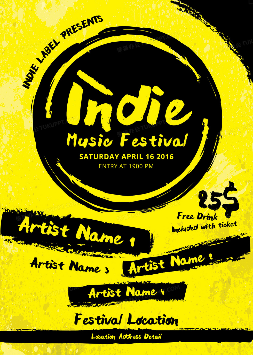本作品内容为黄色文艺手绘音乐节海报, 格式为 psd, 图片尺寸为2556 x 3582, 作品中背景图片无需修改, 源文件无水印,可以直接使用, 欢迎使用熊猫办公。 如认为平台内容涉嫌侵权,可通过邮件:tousu@tukuppt.com提出书面通知,我们将及时处理。
