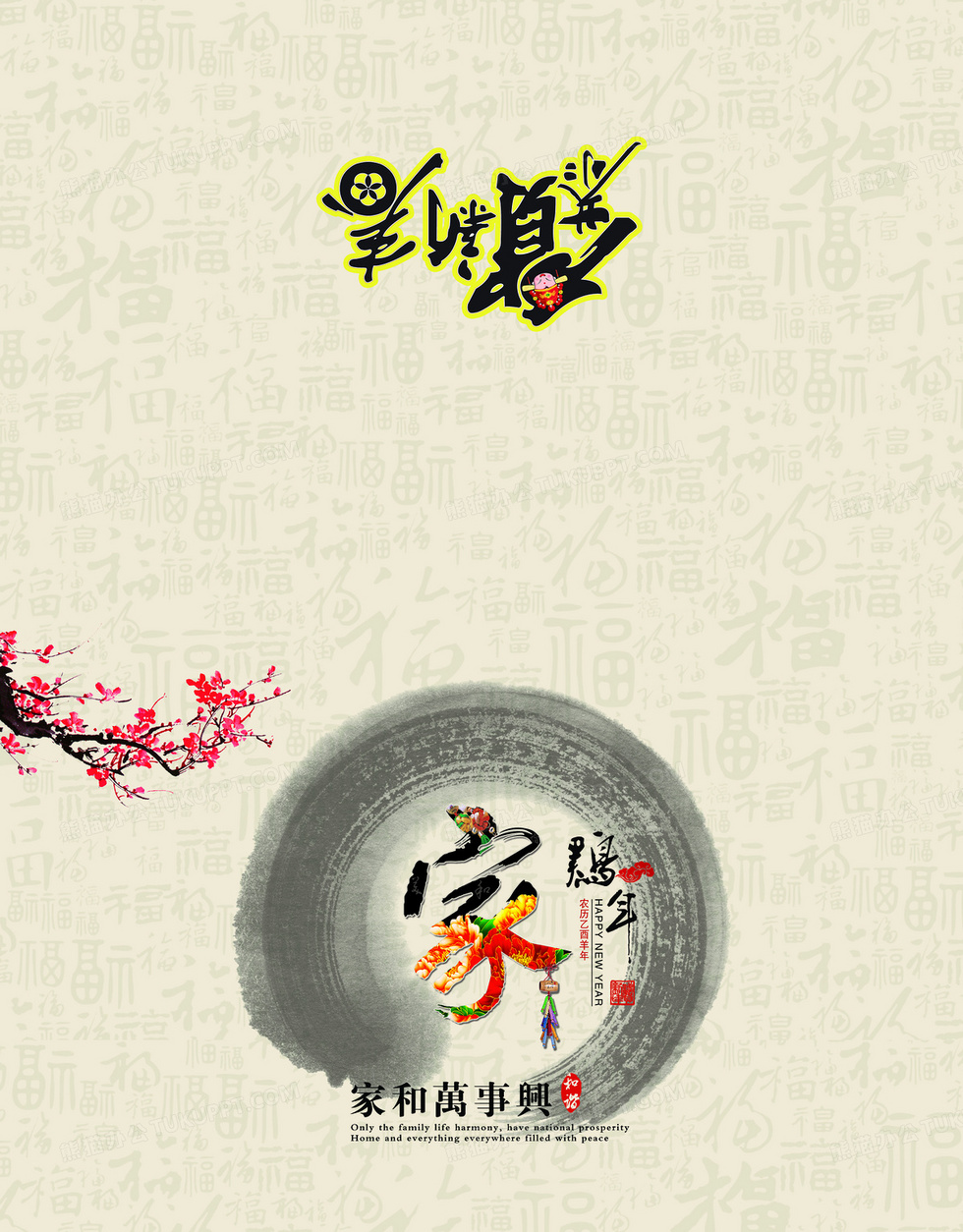 本作品内容为贺新年中国风贺卡背景, 格式为 psd, 图片尺寸为2528 x 3236, 作品中背景图片无需修改, 源文件无水印,可以直接使用, 欢迎使用熊猫办公。 如认为平台内容涉嫌侵权,可通过邮件:tousu@tukuppt.com提出书面通知,我们将及时处理。