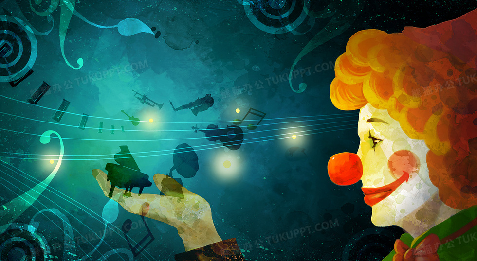 本作品内容为小丑 音乐 炫光背景, 格式为 psd, 图片尺寸为4252 x 2329, 作品中背景图片无需修改, 源文件无水印,可以直接使用, 欢迎使用熊猫办公。 如认为平台内容涉嫌侵权,可通过邮件:tousu@tukuppt.com提出书面通知,我们将及时处理。