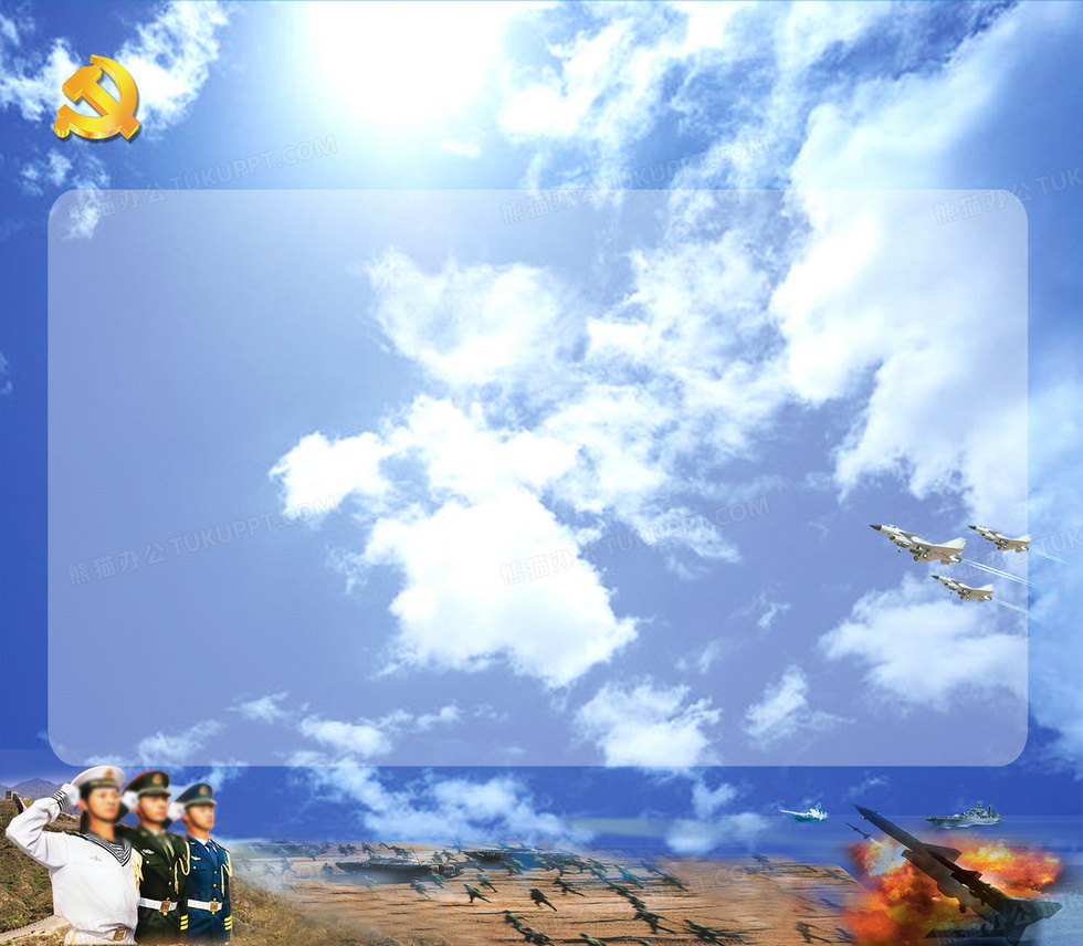本作品内容为祖国蓝天军事宣传栏, 格式为 psd, 图片尺寸为3544 x 3094, 作品中背景图片无需修改, 源文件无水印,可以直接使用, 欢迎使用熊猫办公。 如认为平台内容涉嫌侵权,可通过邮件:tousu@tukuppt.com提出书面通知,我们将及时处理。