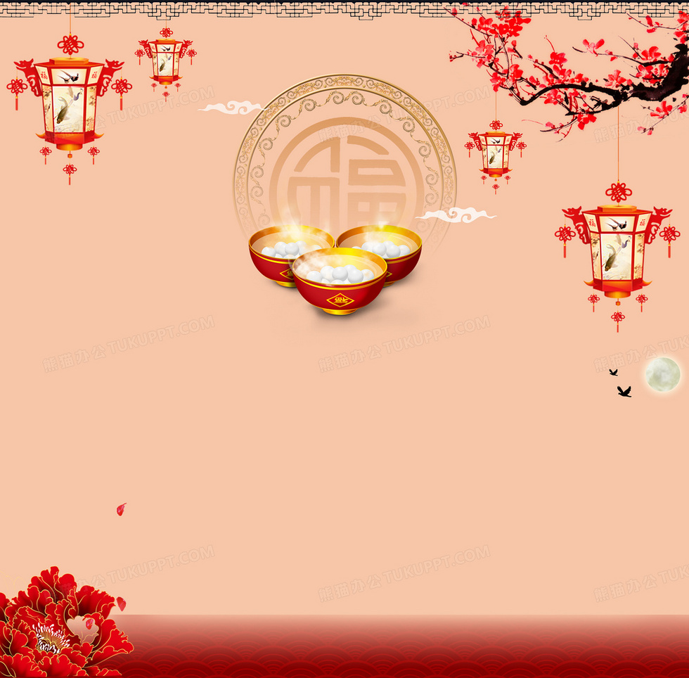 本作品内容为中国风梅花下闹元宵汤圆背景素材, 格式为 psd, 图片尺寸为3000 x 2953, 作品中背景图片无需修改, 源文件无水印,可以直接使用, 欢迎使用熊猫办公。 如认为平台内容涉嫌侵权,可通过邮件:tousu@tukuppt.com提出书面通知,我们将及时处理。