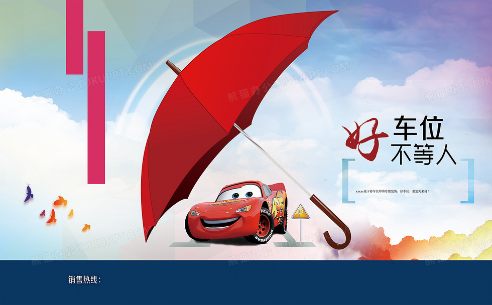 本作品内容为好车位不等人地产背景素材, 格式为 psd, 图片尺寸为5669 x 3516, 作品中背景图片无需修改, 源文件无水印,可以直接使用, 欢迎使用熊猫办公。 如认为平台内容涉嫌侵权,可通过邮件:tousu@tukuppt.com提出书面通知,我们将及时处理。