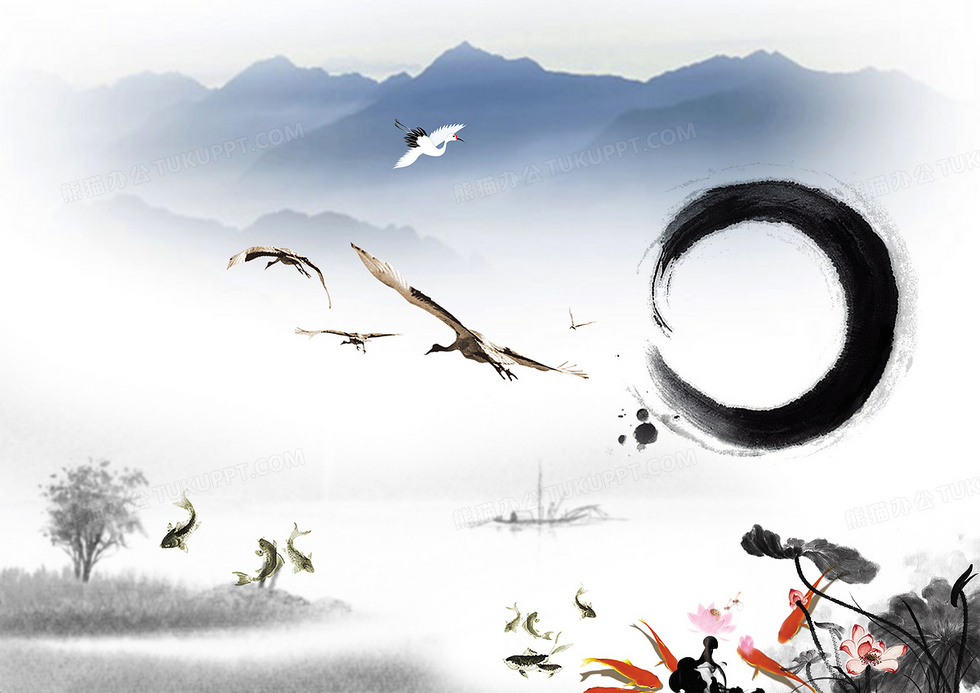 本作品内容为中国古典水墨壁画海报背景素材, 格式为 psd, 图片尺寸为4961 x 3508, 作品中背景图片无需修改, 源文件无水印,可以直接使用, 欢迎使用熊猫办公。 如认为平台内容涉嫌侵权,可通过邮件:tousu@tukuppt.com提出书面通知,我们将及时处理。