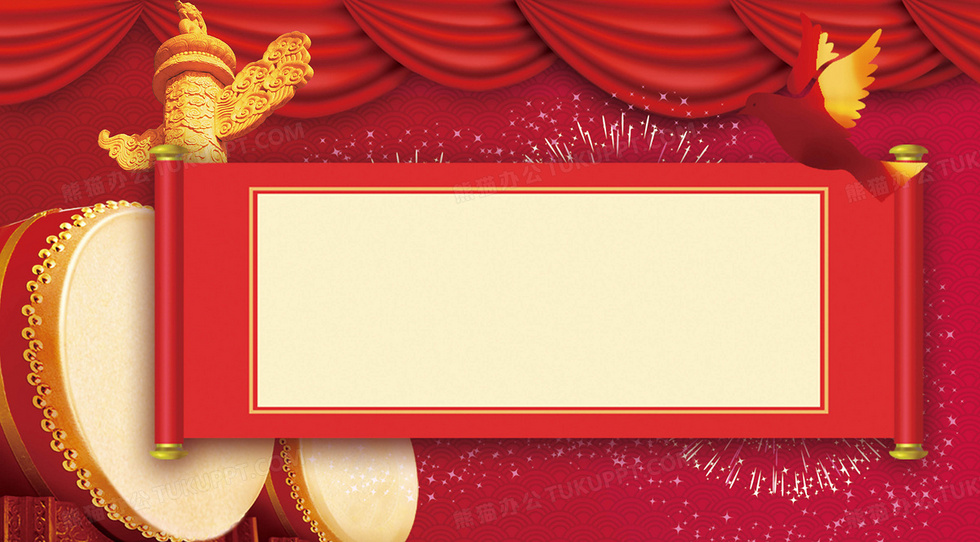 本作品内容为中式红色春节国庆放假通知背景素材, 格式为 psd, 图片尺寸为3737 x 2067, 作品中背景图片无需修改, 源文件无水印,可以直接使用, 欢迎使用熊猫办公。 如认为平台内容涉嫌侵权,可通过邮件:tousu@tukuppt.com提出书面通知,我们将及时处理。